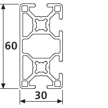 Unser Strebenprofil 30×60 mm mit Nutbreite 6 mm leicht 2N mit zwei geschlossenen Nuten.